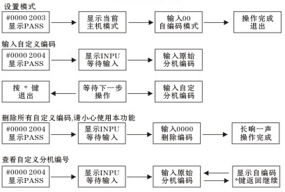 輸入4位分機(jī)號(hào)+4位密碼,長(zhǎng)響表示正確,三聲短密碼錯(cuò)誤